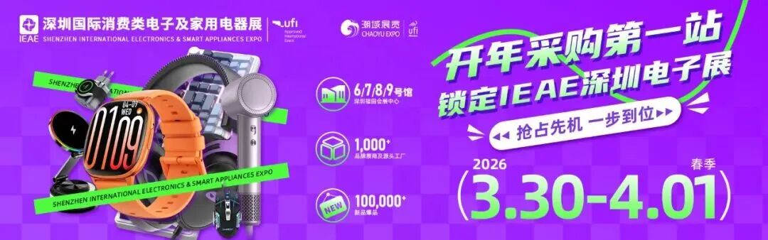 春启鹏城,智汇潮头!备受电子行业瞩目的第七届IEAE深圳国际消费类电子及家用电器展(春季),将于2026年3月30日至4月1日在深圳会展中心(福田)盛大启幕。作为全国领先的电子电器及家用电器发布与交流平台,本届展会将汇聚行业优质资源、集中呈现前沿成果,为从业者搭建高效对接、洞察趋势的核心桥梁,助力行业把握新风口、实现新突破。
